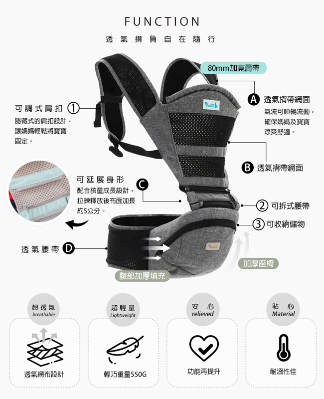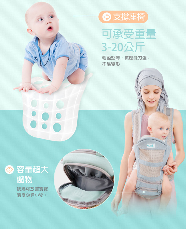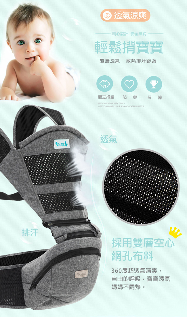 / YODA 透氣款儲物座椅式揹帶 -冰石灰